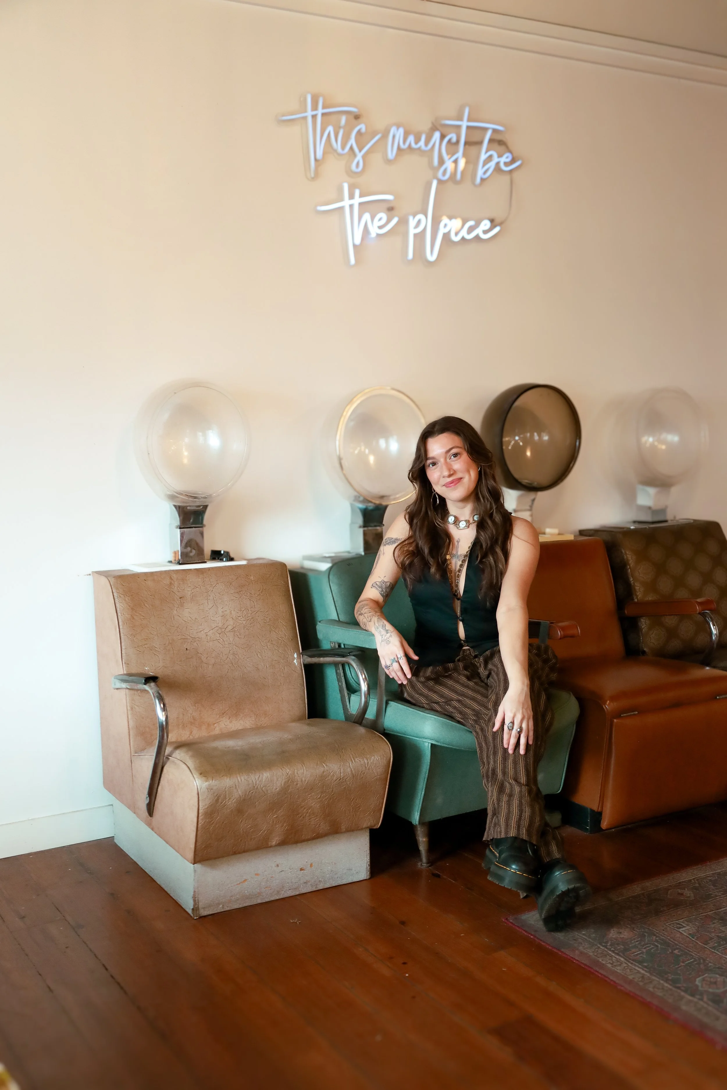 This location serves as a salon home to some of Mississippiβs most talented, creative, independent hair and makeup artists. Walking up the stairs to one of the oldest buildings in Brandon, gives a real speakeasy vibe. Upon entering, you will find the warmest welcome by our team, as you take in the very unique design and vibe of this salon. From the signature vintage dryer chairs, to the quirky decor, youβll surely want to post a picture of your visit and share your experience.